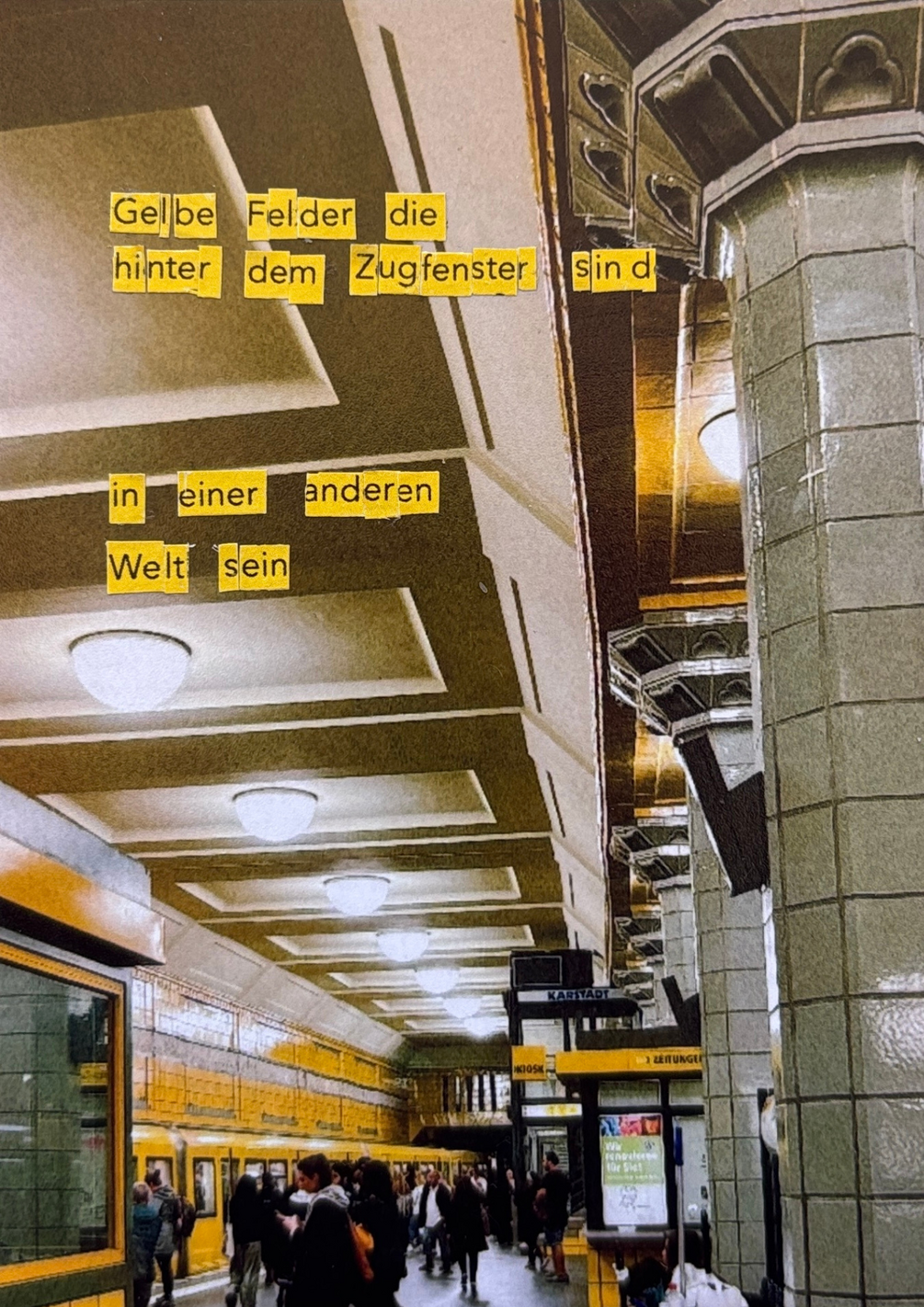 Dieses Zine erzΓ€hlt von einer Woche in Berlin, als plΓΆtzlich auf allen meinen Fotos gelbe Dinge zu sehen waren. Es war eine extrem verregnete Sommerwoche und ich war eigentlich nur zum Arbeiten da β aber mein Herz hΓ€ngt trotzdem an jeder Ecke dieser kaputten Stadt. "π" ist mein erstes Gedicht-Zine.